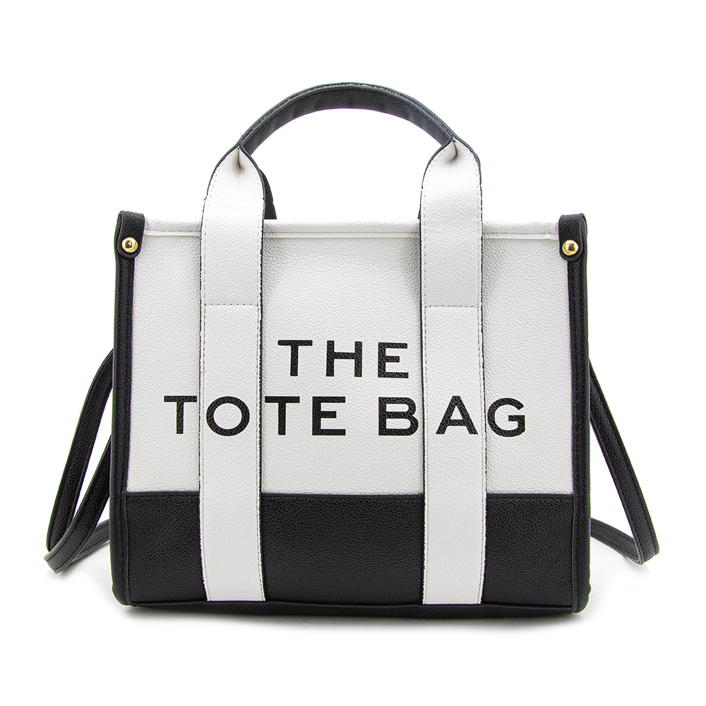 Bandolera tipo tote con un diseño único que destaca por su elegante combinación de colores en contraste.