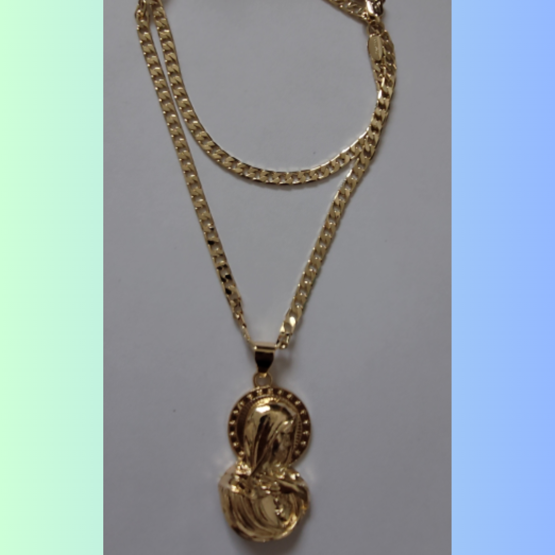 CADENA DE ORO LAMINADO CON DIJE DE VIRGEN EN RELIVE 2D