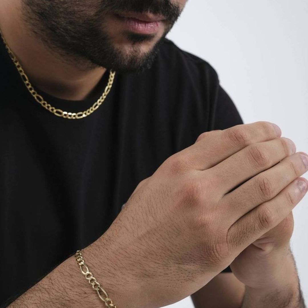 Material : composición de Acero y titanio con una capa de Oro puro que hace que la prenda sea dure más que la joyería convencional.