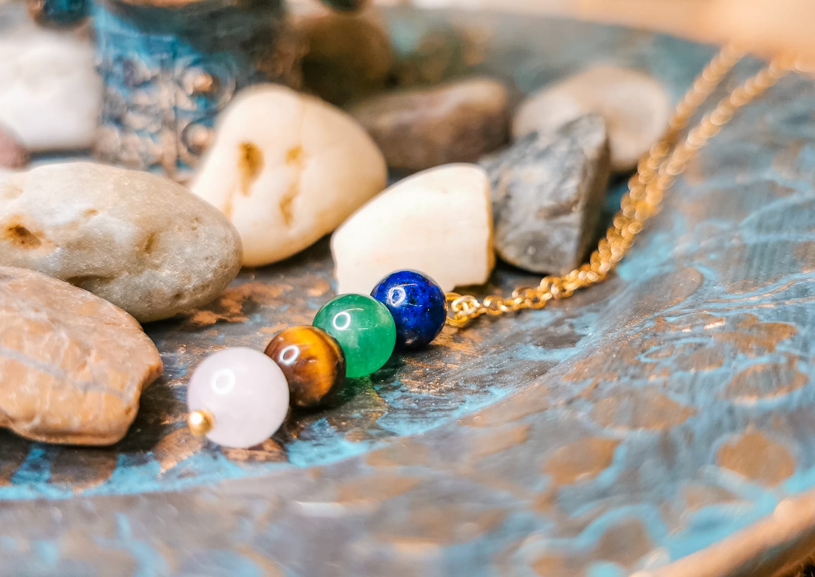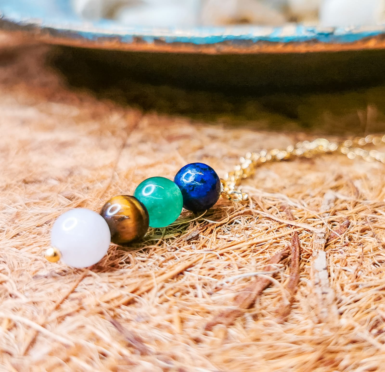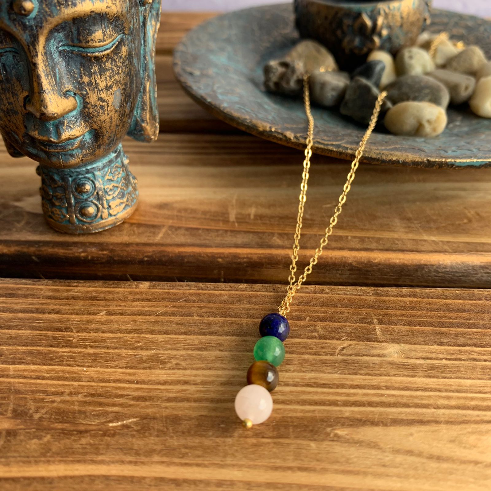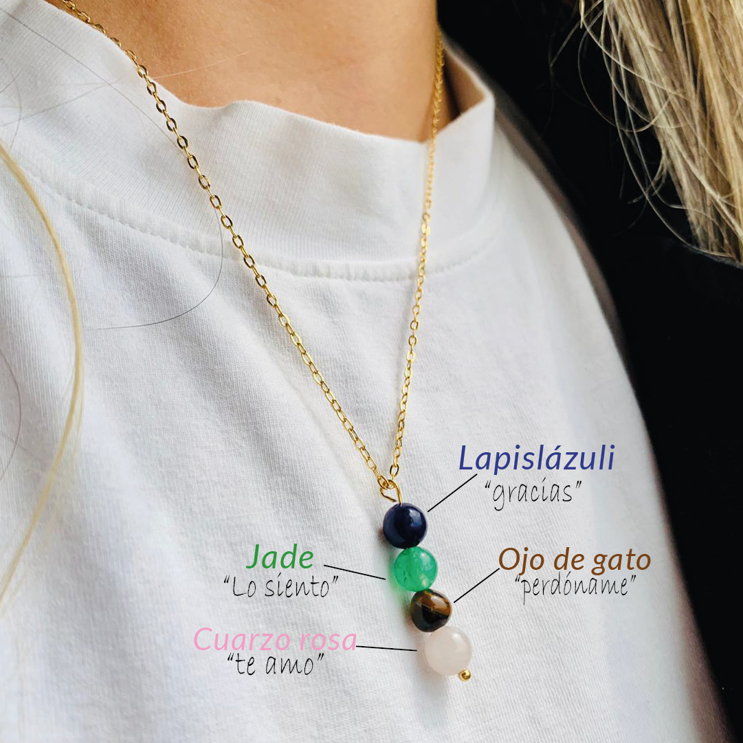 Piedras naturales: Lapislázuli, jade y ojo de gato.