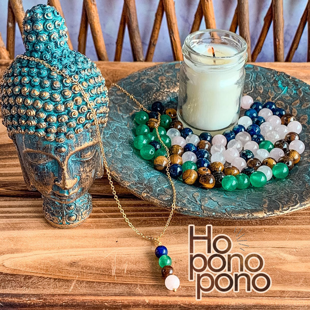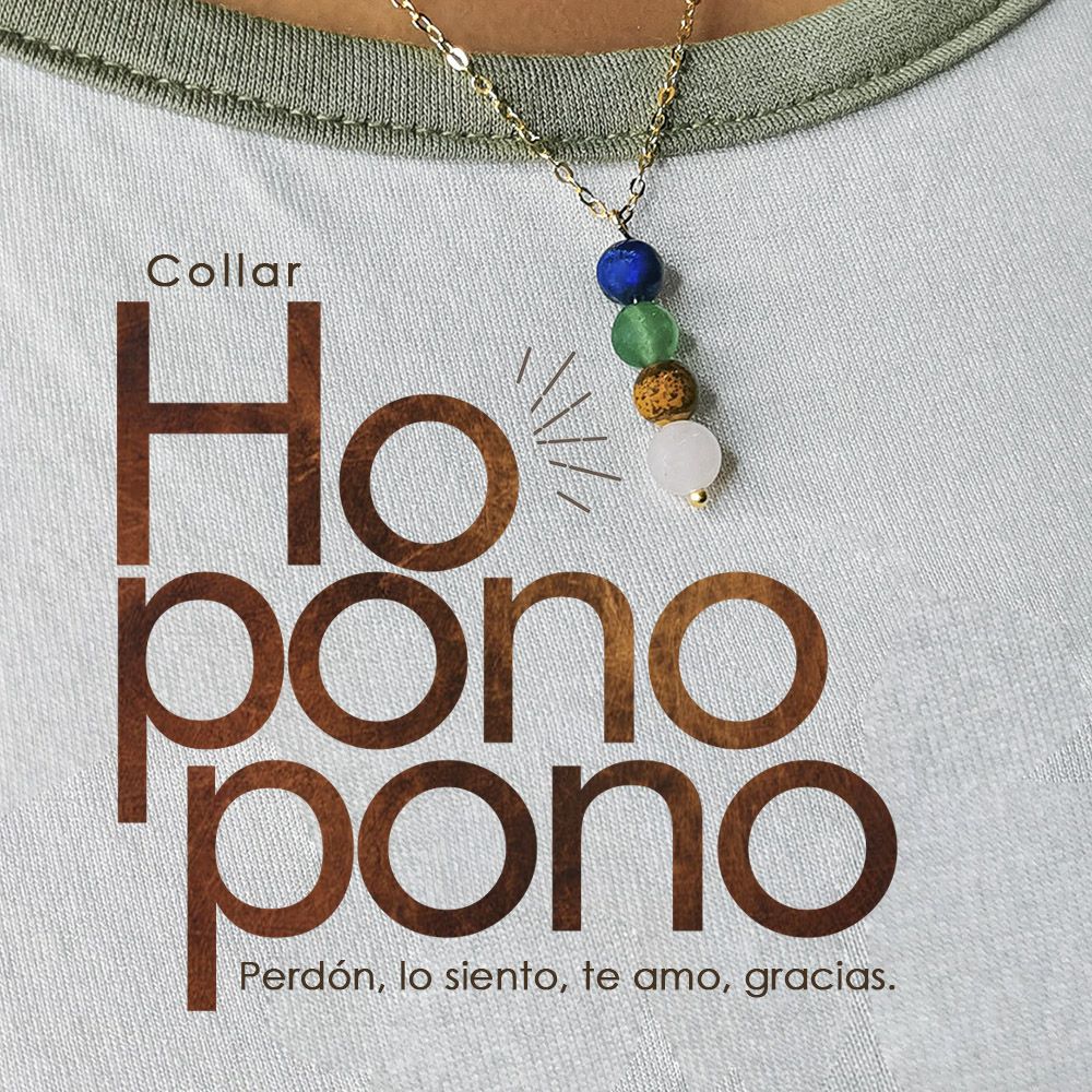Este collar está inspirado en la sabiduría ancestral del Ho’oponopono, una práctica hawaiana de sanación y reconciliación. Sus piedras naturales potencian energías únicas: el lapislázuli favorece la verdad y la intuición, el jade atrae prosperidad y equilibrio, y el ojo de gato aporta protección y claridad espiritual.