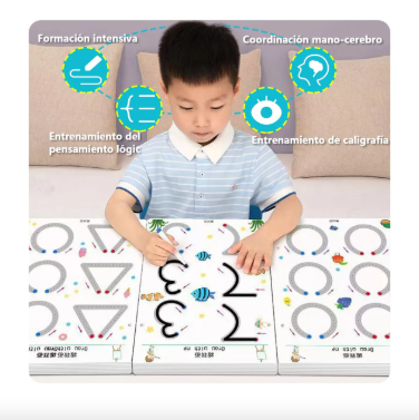 Libro de ejercicios mágicos de dibujo educativo Montessori para niños de 3 a 8 años, libro de seguimiento para mejorar el pensamiento gráfico y las habilidades de escritura