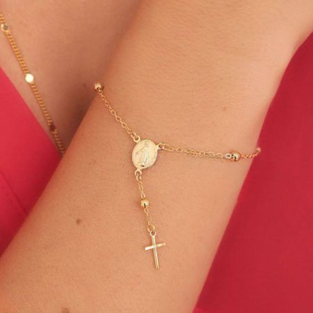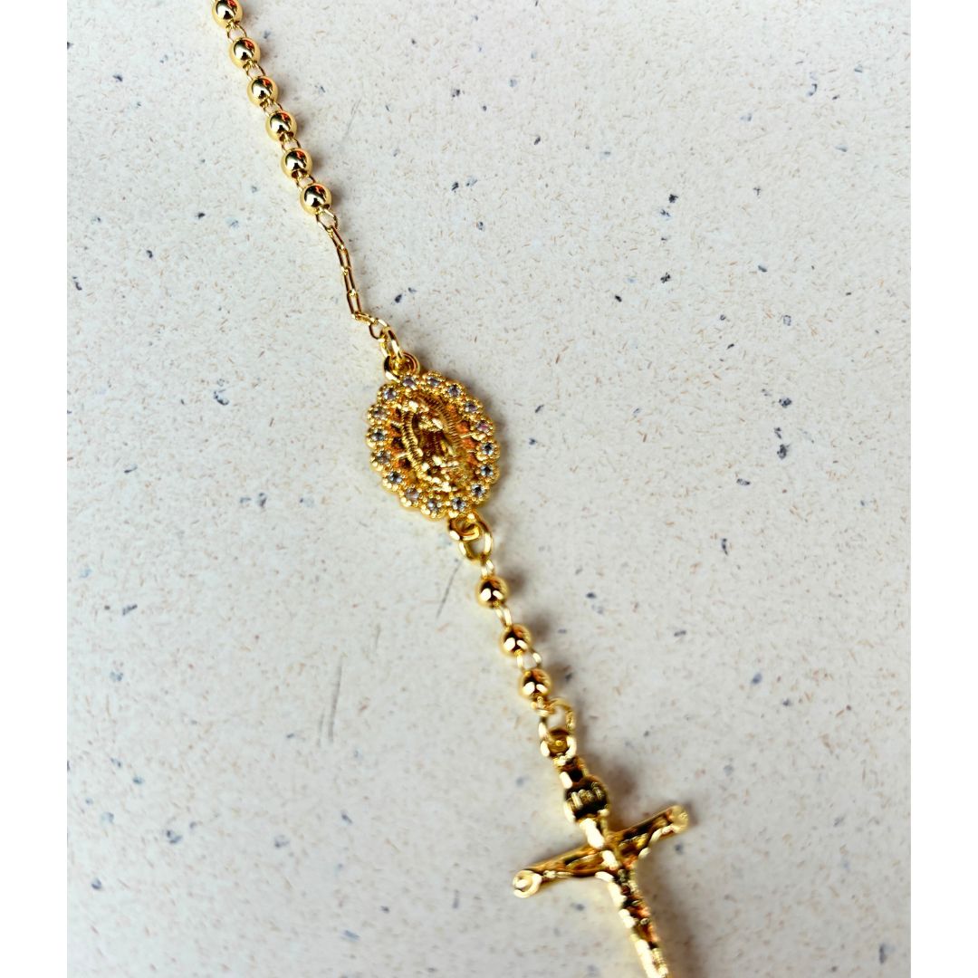 DIJE DE LA VIRGEN DE GUADALUPE DECORADO EN PIEDRERIA . CRUZ EN RELIEVE.