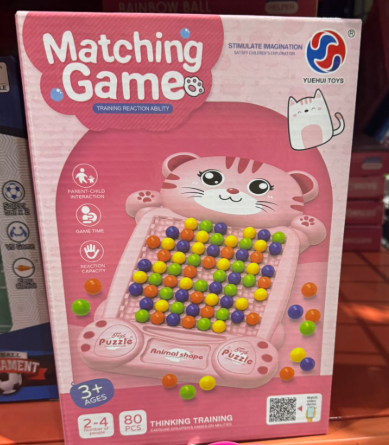 Contenido: 1 tablero en forma de gatito + 80 bolitas de colores