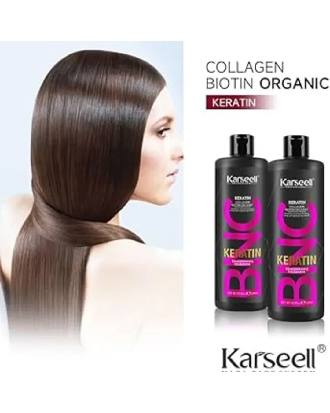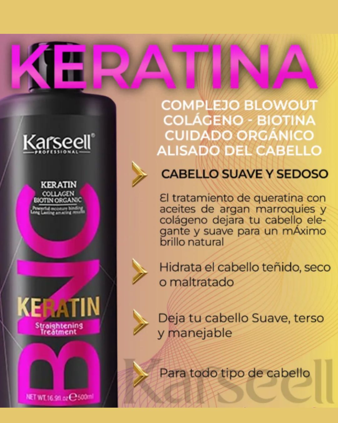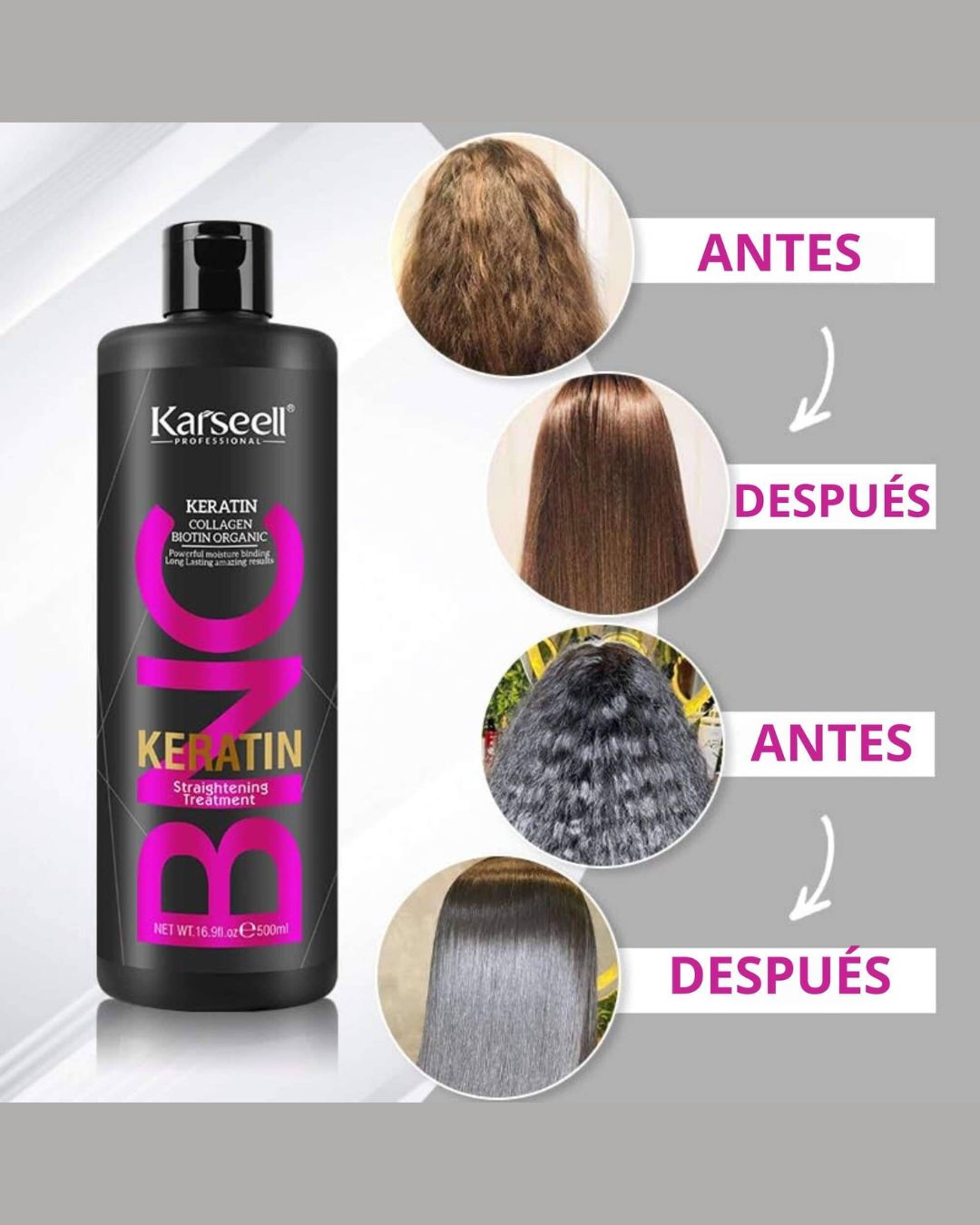 El tratamiento de queratina con aceites de argan marroquies y colágeno dejara tu cabello elegante y suave para un máximo brillo natural