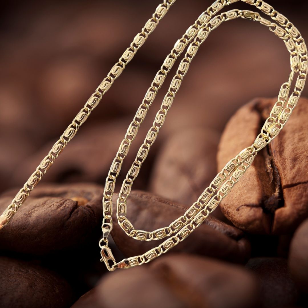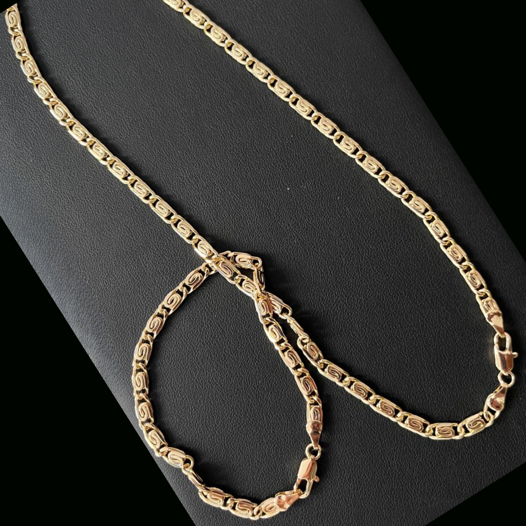 Material : composición de Acero y titanio con una capa de Oro puro que hace que la prenda sea dure más que la joyería convencional.