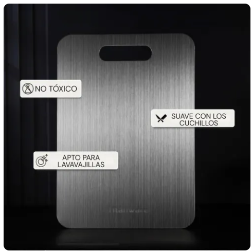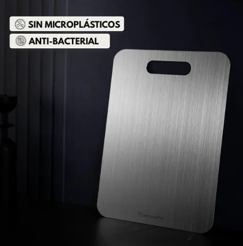 La superficie lisa y no absorbente del titanio evita que las manchas se fijen, manteniendo su tabla de cortar como nueva.