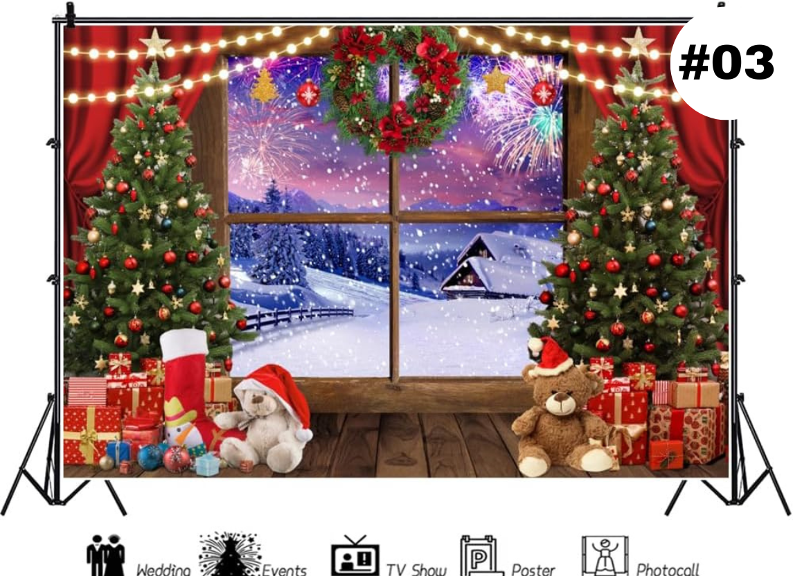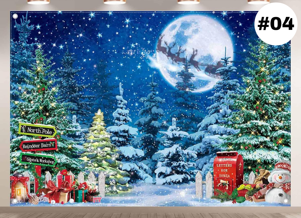 Hermoso telón navideño de alta calidad, diseñado para transformar cualquier espacio en un rincón cálido y festivo. Elaborado en tela fina de textura suave y resistente, con colores vivos y detalles realistas que destacan la magia de la Navidad.