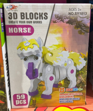 ¡Construye, aprende y desarrolla la inteligencia! El Set de Bloques 3D Caballo es el juguete ideal para combinar la diversión de la construcción con el desarrollo cognitivo. Los niños podrán crear su propia obra de arte tridimensional ensamblando las 59 piezas para formar un hermoso caballo de estilo fantasía.
